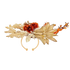 On the hand the ring stretches in a gentle, wing like line, fuller at one side and tapering to a finer point at the other. A fan of pale straw and warm caramel forms the base, fanning out like a folded field. At the centre, a dense tuft of ember and cream is framed by rounded seeds and feathery textures, while a slim run of brighter orange buds traces the outer edge to draw the eye along its length. The palette stays in oat, cream, caramel and ember with small sparks of orange, so the piece feels airy yet grounded, detailed without feeling crowded.