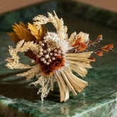 At its widest point the floral composition measures roughly seven centimetres across, so it creates a clear statement along the hand rather than a small dot at the centre. The length gives a graceful line, while the lightness of the dried materials is intended to remain comfortable for events and quieter everyday moments.