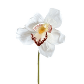 A single artificial cymbidium bloom, leafless and finely poised on a slender botanical stem. In Snow White, a crisp, porcelain-cool white, broad petals frame a butter-cream throat dusted with claret speckles, giving clean definition and a quietly luxe presence. Scattered in multiples across petite bud vases, it reads effortless and editorial; used for DIY, it becomes a charming accent, slipped onto a mini hair clip, tied into gift wrapping, or tucked inside a sleeve for a discreet surprise.