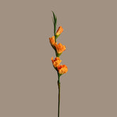 Vertical rhythm with a sunlit lift. This premium artificial gladiolus builds a clean column of ruffled florets in mandarin orange, warm at the base and bright along each petal edge. The stepped spacing can read disciplined from afar and richly textured up close. Compelling as a single statement, luminous in pairs, and superb for giving height and pace to contemporary arrangements.
