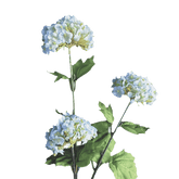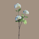 Quiet luminosity in bloom. This premium artificial hydrangea gathers three airy domes in Stillwater Blue, a pale, clear blue that drifts to soft ivory with a whisper of lemon at the heart. Stepped along a branching stem, the clusters can read buoyant and refined: from a distance, a light-filled canopy; up close, petals can show a fine, silk-like hand. A single spray can offer a poised accent; two or three can compose a serene centrepiece with effortless clarity.