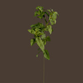 Garden crispness, distilled. This premium artificial foliage spray carries textured, crinkled leaves in Fresh Mint, a bright, clean green that reads lively and cooling. The layered rosettes step along a slender botanical stem, adding lift, freshness and fine-grained detail. Solo in a petite vessel it feels contemporary and intentional; grouped, it builds a brisk, kitchen-garden accent that wakes the palette without overpowering blooms.